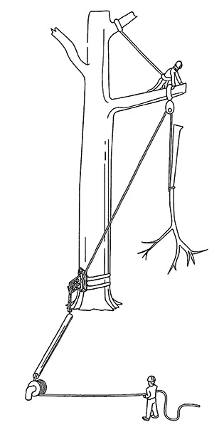 Abattage Directionnel : Utilisé pour abattre l’arbre dans une direction contrôlée, minimisant les risques pour les structures avoisinantes.